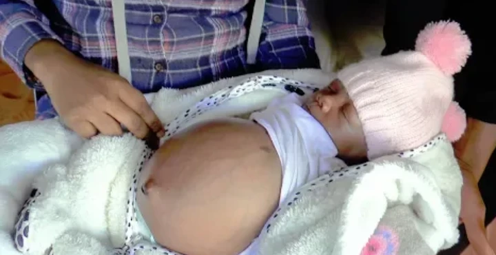 Even after her birth, the doctors still couldn't identify what the mass contains because it was affecting her right kidney and liver, so she was booked to be operated on when she is a month old.